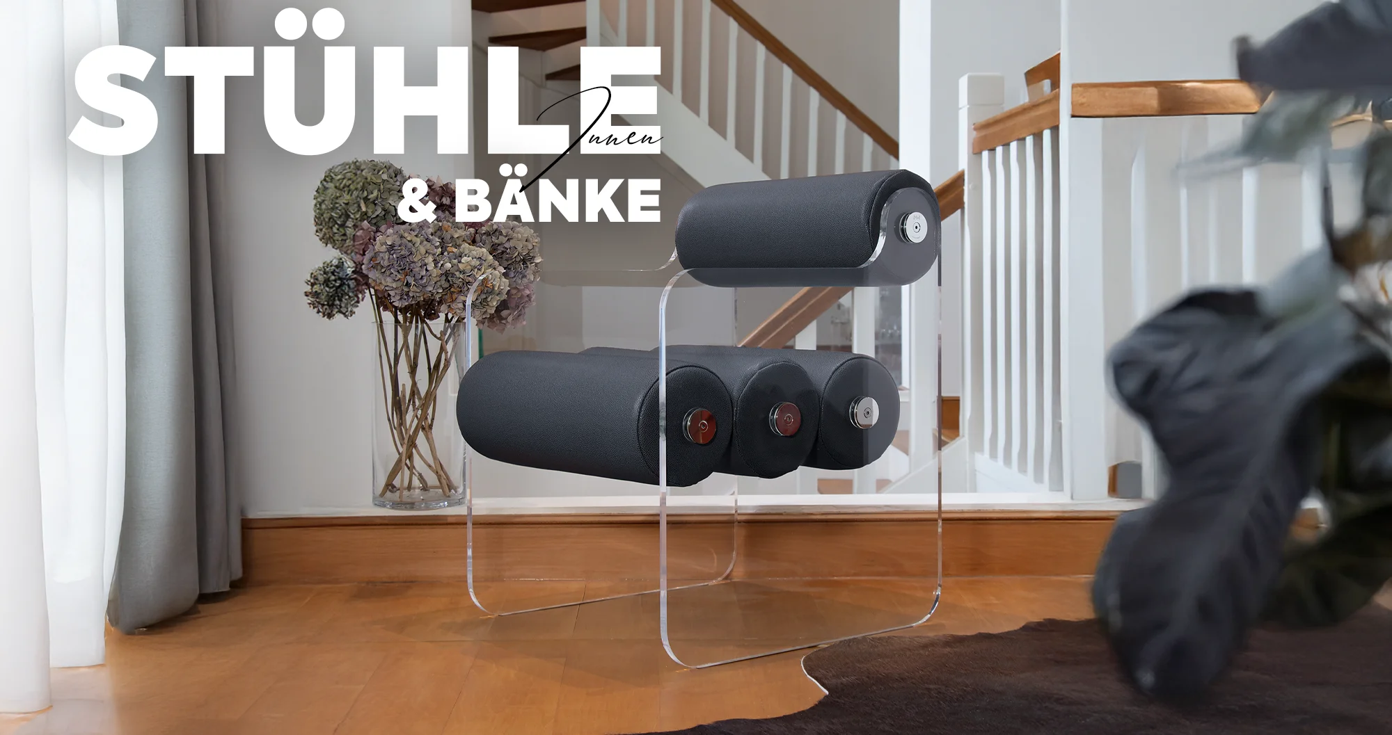 Unsere designorientierten Innenstühle, Innenbänke und Innenpoufs