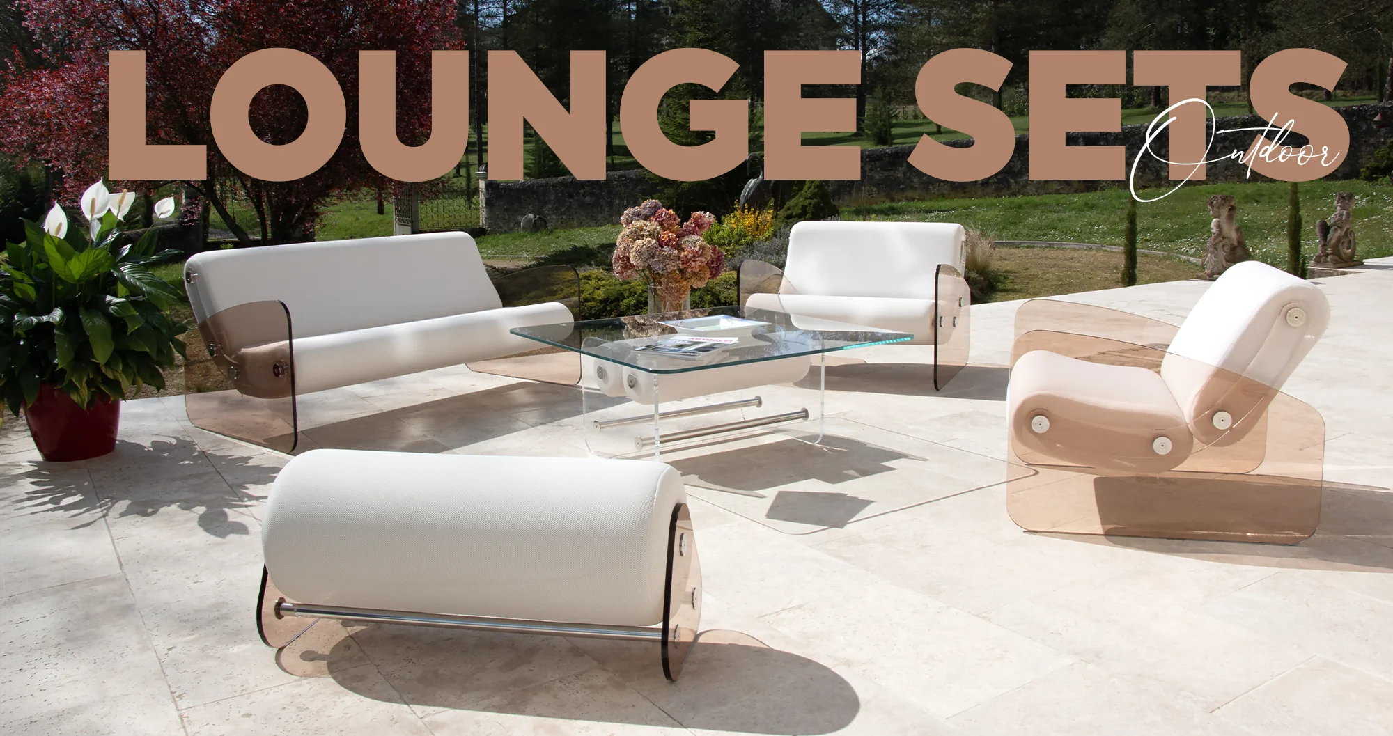 Discover our designer lounge sets created to bring harmony and elegance to your outdoor spaces. KUUMO compositions combine armchairs, sofas, coffee tables and benches to form coherent, modern atmospheres suitable for all open-air environments. Each set stands out with clean lines, high-end materials and exceptional comfort. Modular, durable and easy to maintain, our lounge sets are perfectly suited for residential, professional or hospitality projects. Explore all our configurations and create a unique outdoor lounge that reflects your style and enhances your terraces, gardens and exterior spaces.