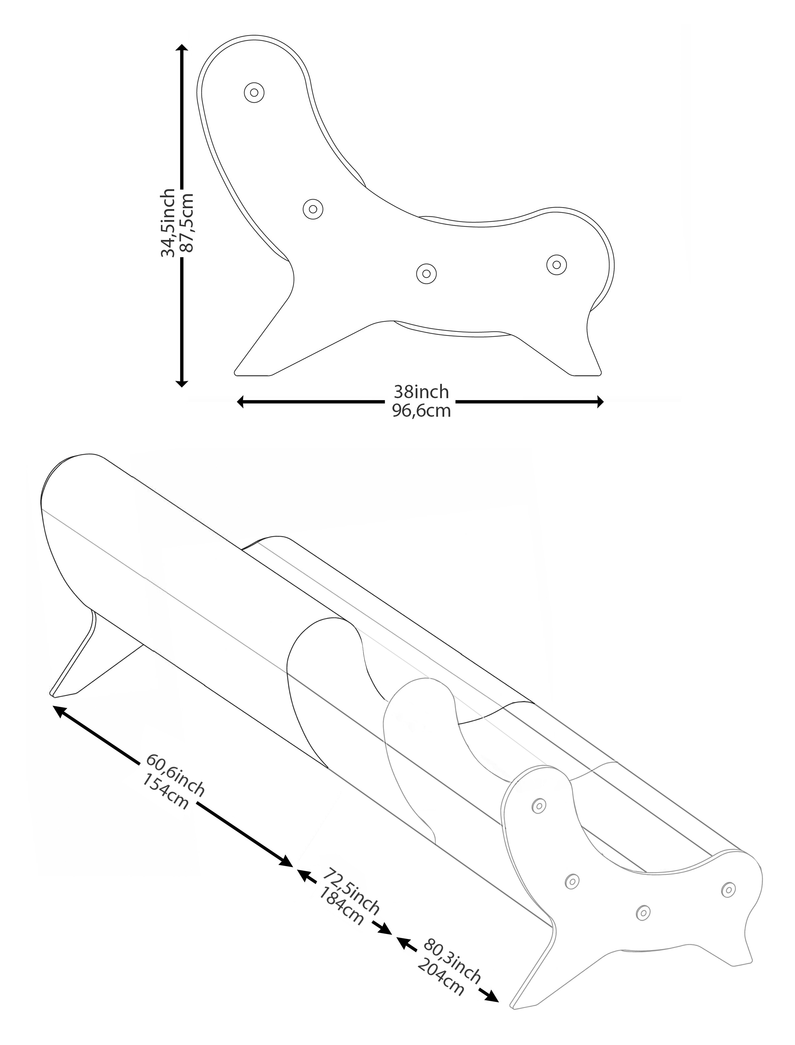 Dimensions: 154, 184 or 204 x 87.5 x 96.6 cm.