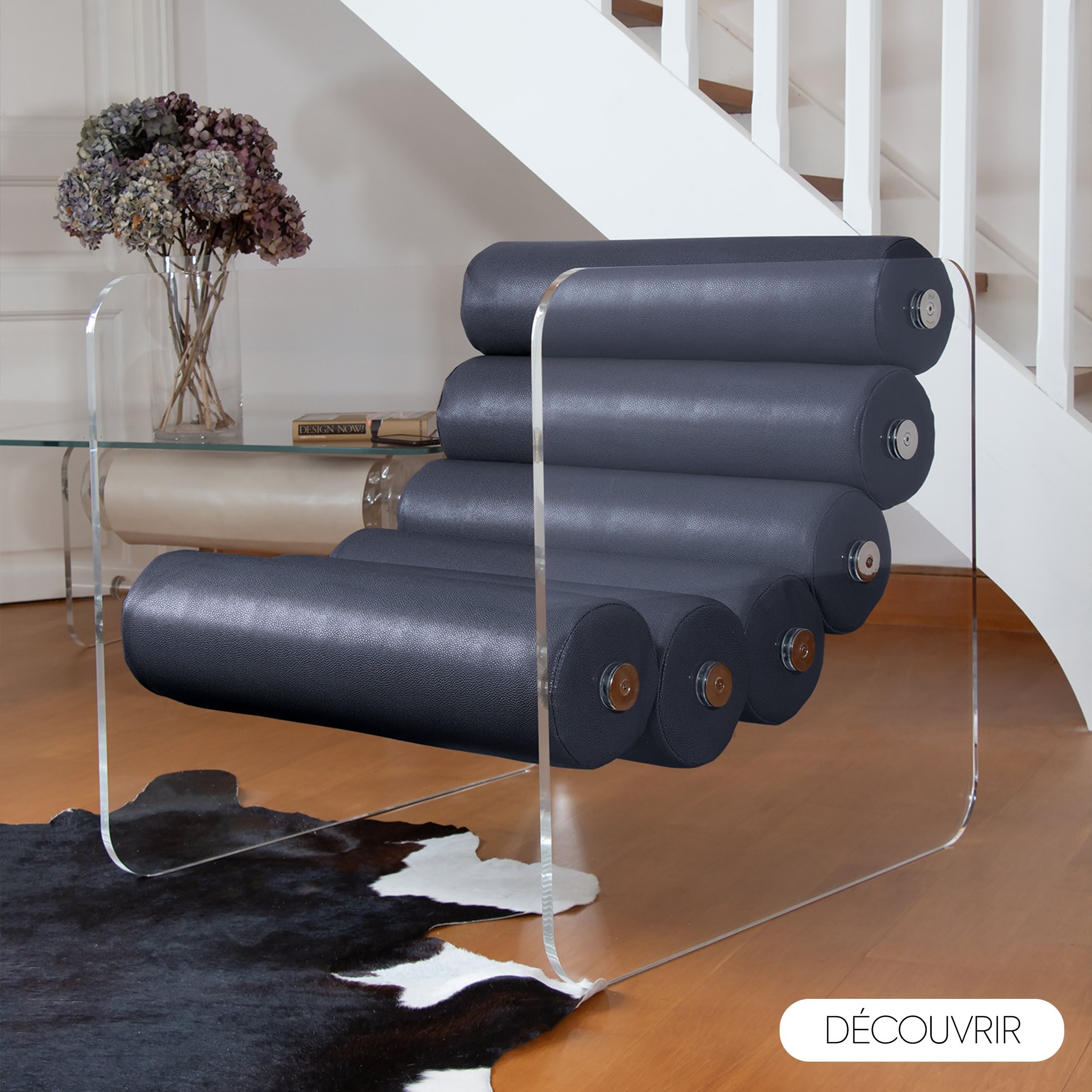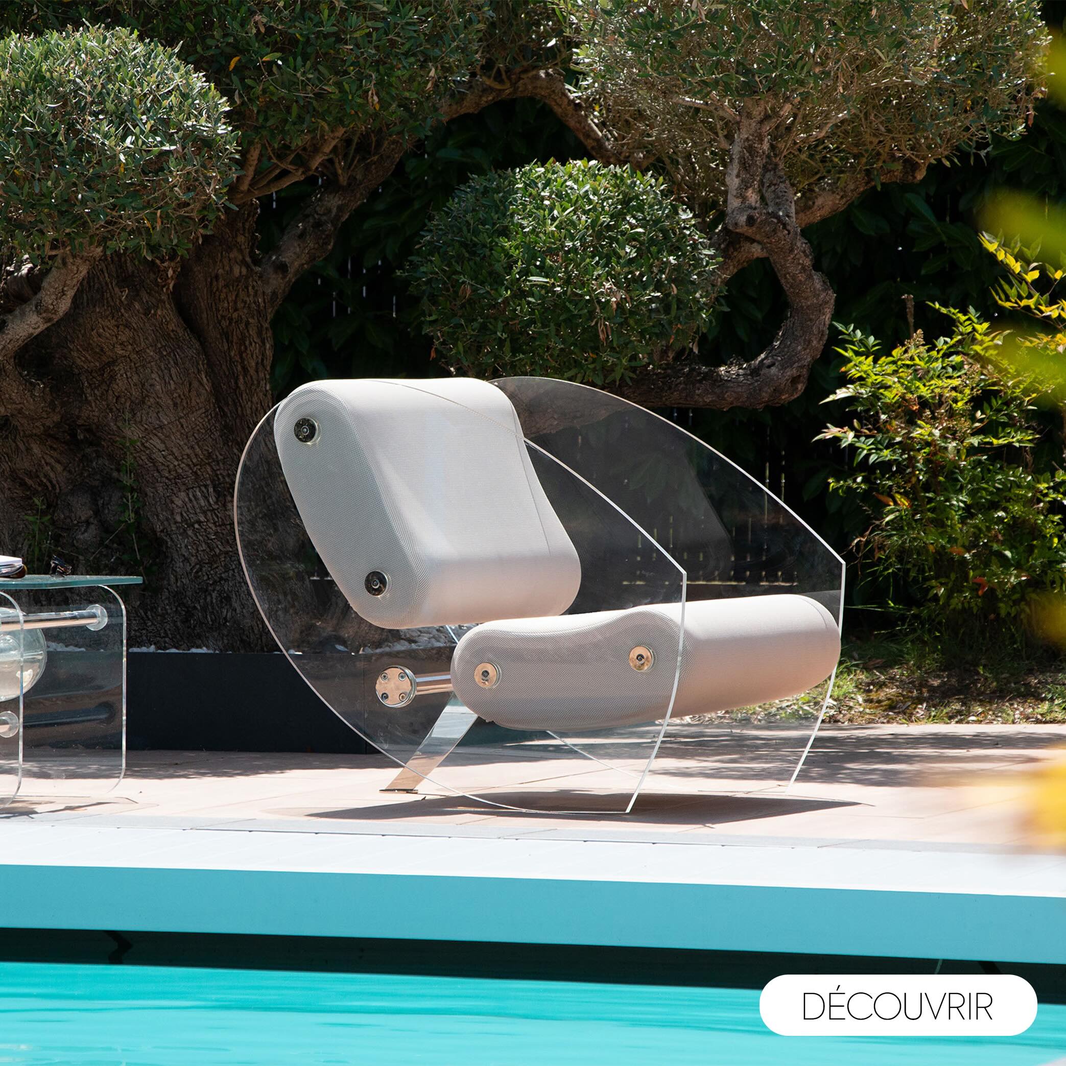 Fauteuil design MW01 "Plume" – Parois en PMMA coulé, assise en mousse
