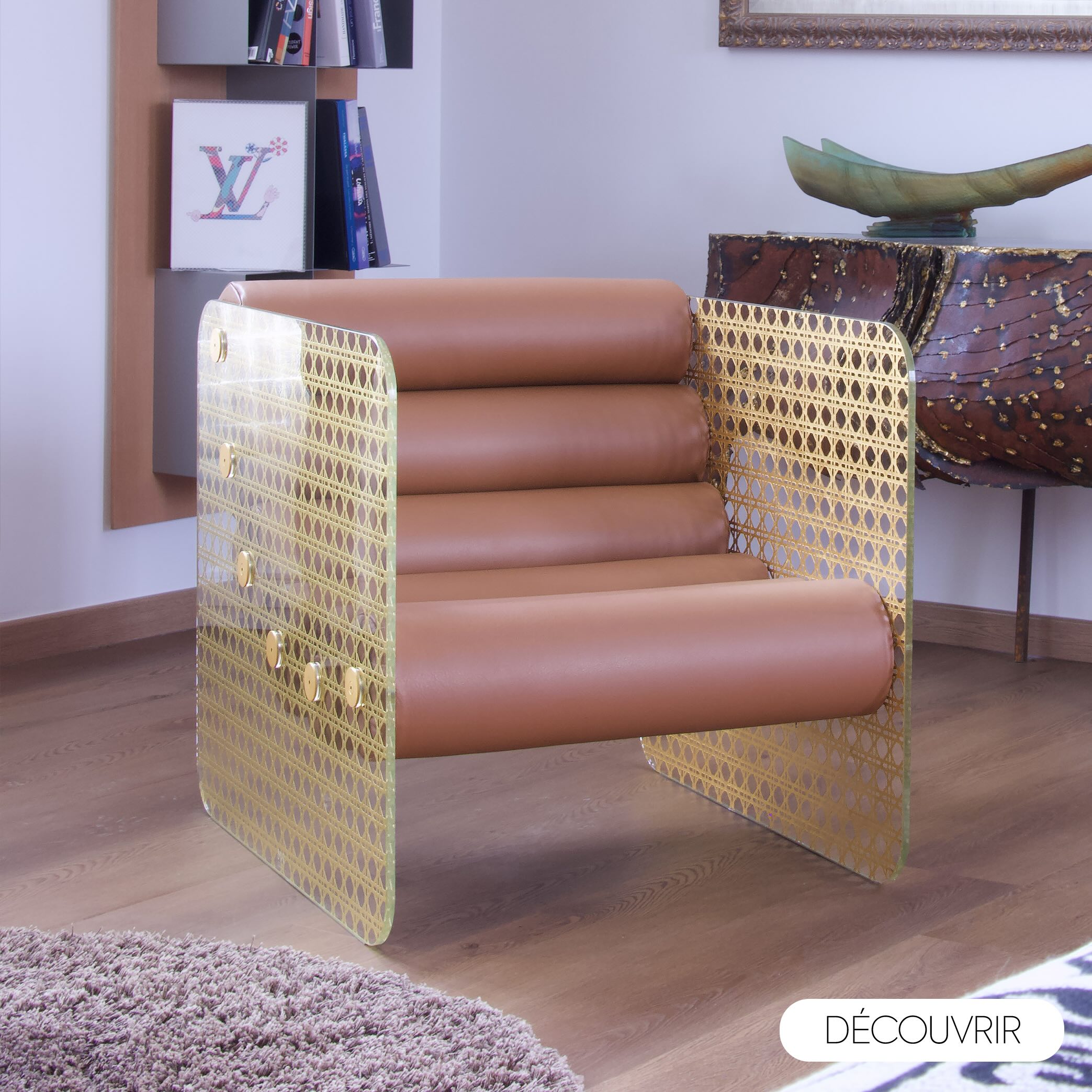 Fauteuil design MW07 – Parois en PMMA coulé bronze, assise en mousse
