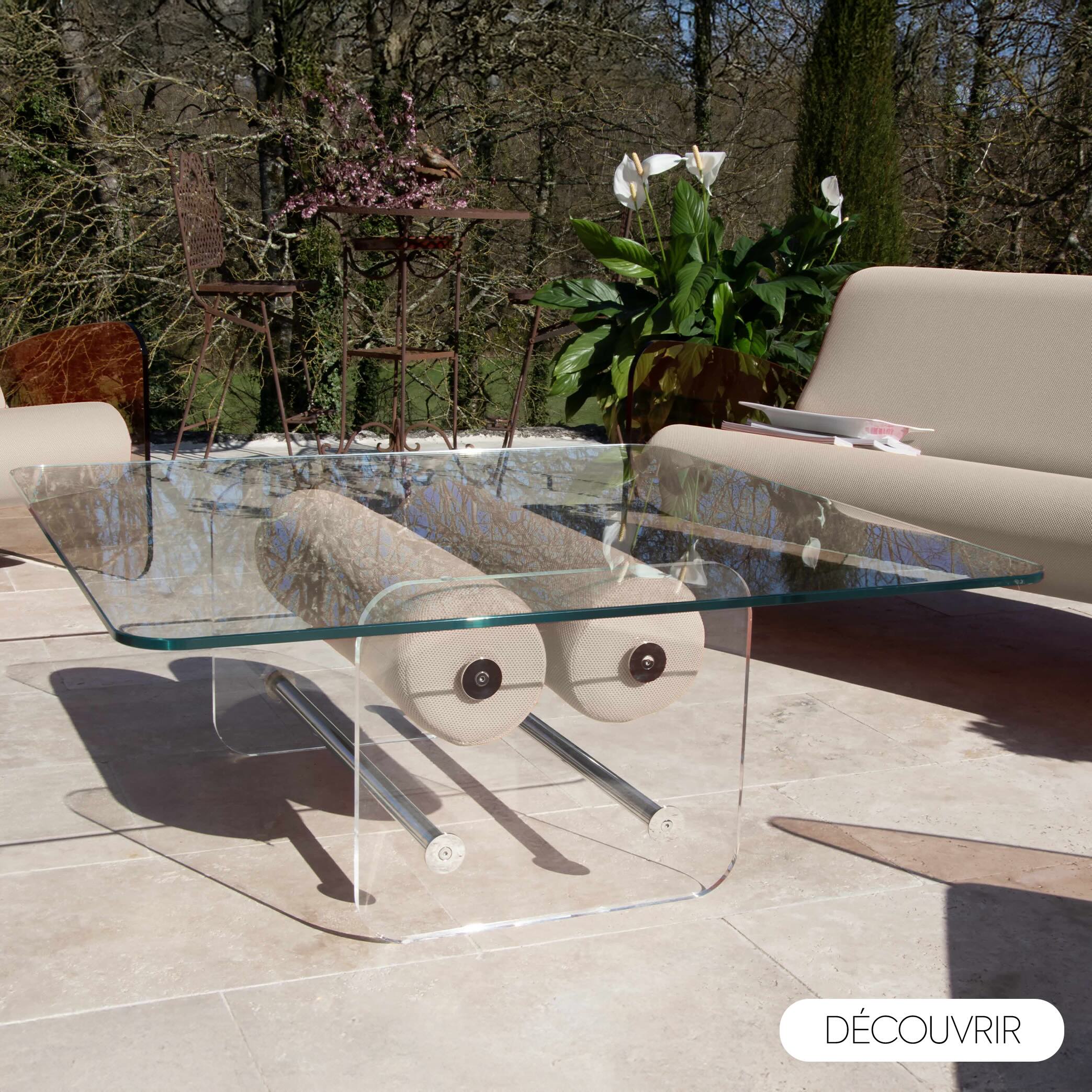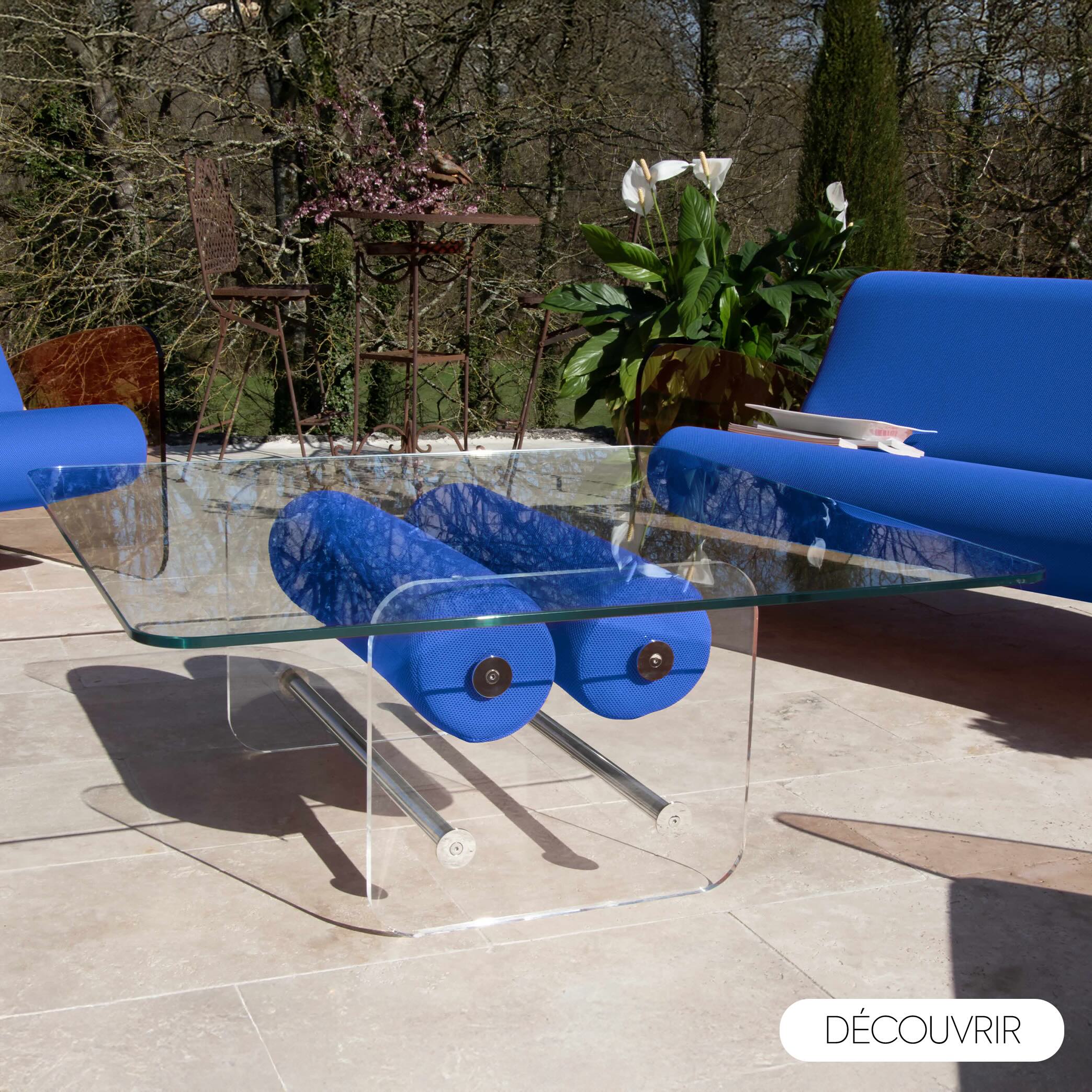 Imaginé par le designer Olivier Santini, le mobilier KUUMO Design allie subtilement couleur et transparence pour créer des pièces qui jouent avec la lumière et les espaces. Grâce à l'utilisation de parois en verre trempé ou en Altuglas, nos fauteuils et canapés semblent flotter, offrant une intégration visuelle légère et élégante, même avec des assises généreusement dimensionnées et extrêmement confortables.