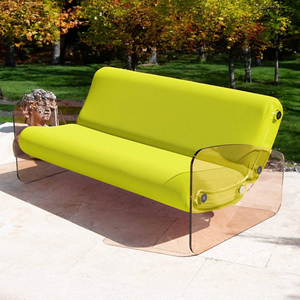 Le MW03 propose des coussins indépendants en forme de haricot, offrant un confort enveloppant et une assise ergonomique. Deux pièces en PMMA transparent en forme de boomerang maintiennent les coussins et soulignent son caractère sculptural.