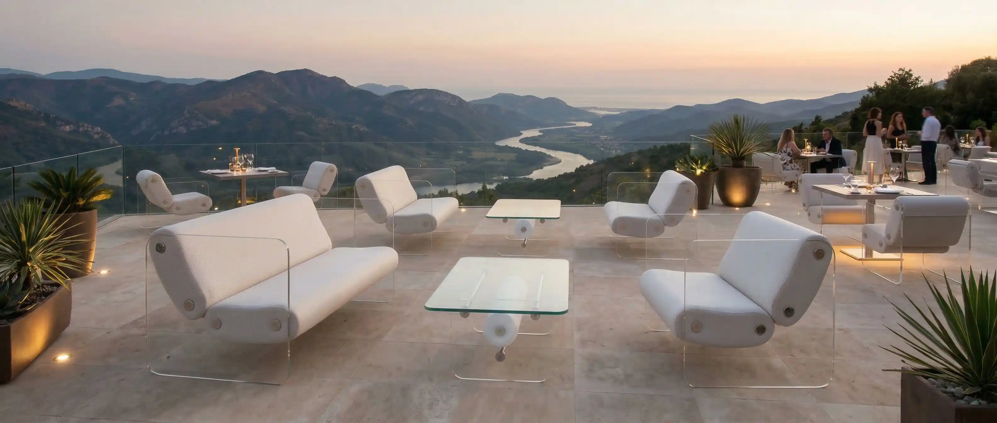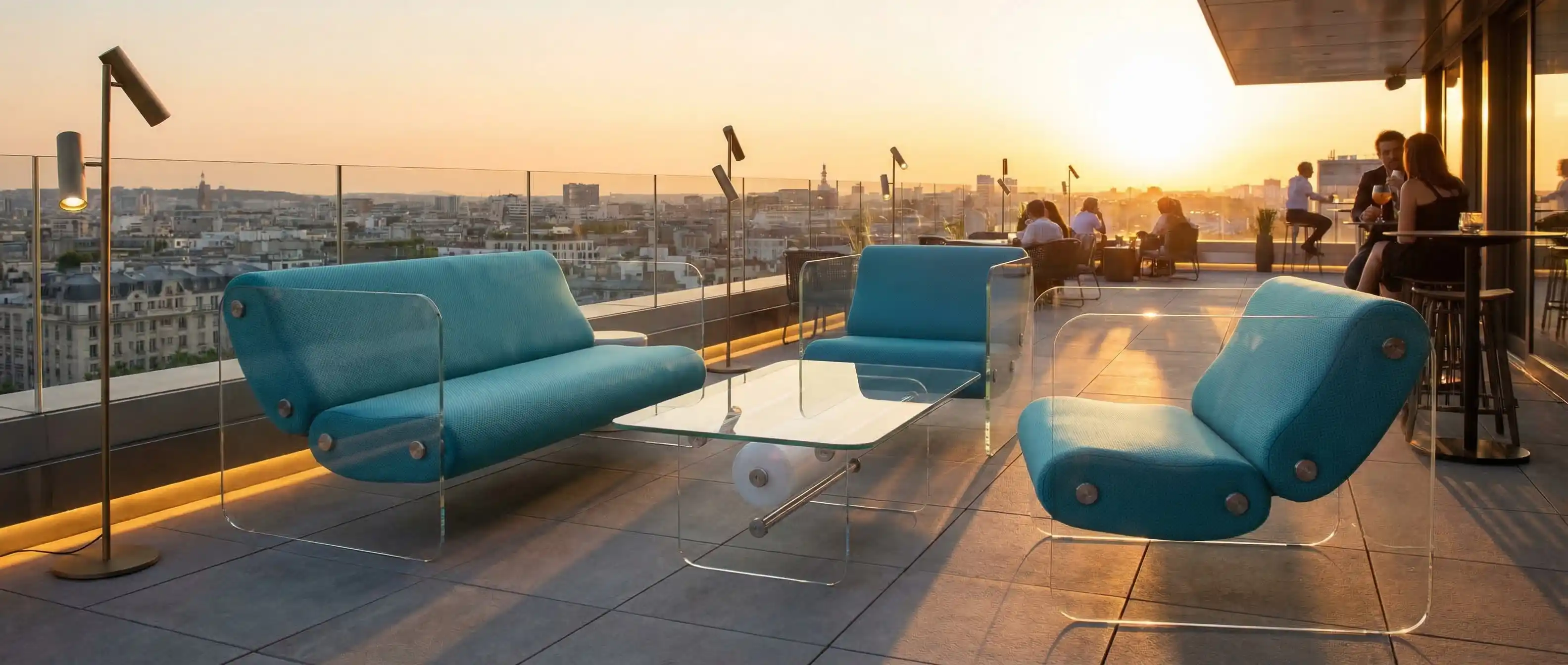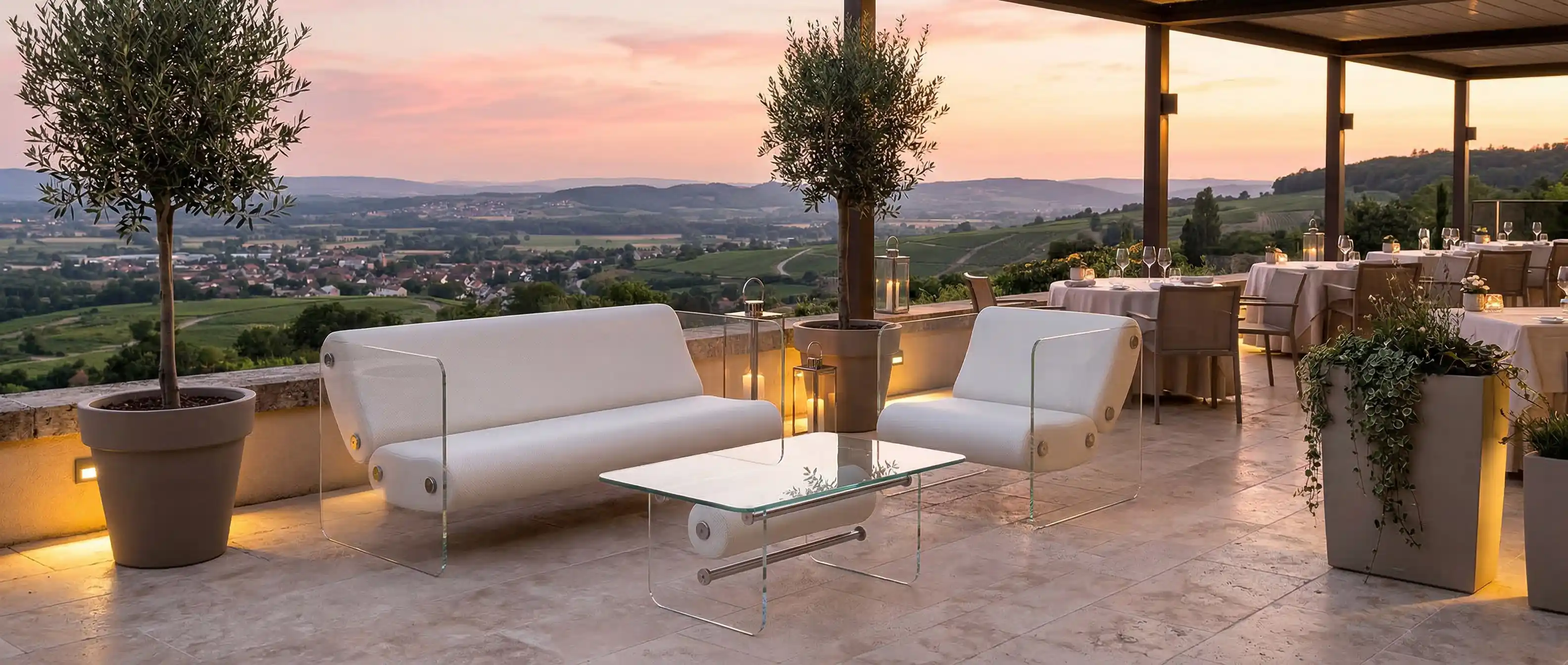 Grâce à sa mousse alvéolaire, il résiste aux conditions extérieures tout en offrant un confort exceptionnel. Ses parois transparentes en PMMA créent une illusion de lévitation, conférant au MW08 une esthétique aérienne et sophistiquée. Résistantes aux chocs et aux rayures, elles garantissent une grande durabilité.