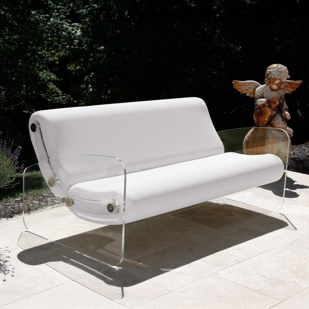 Ses parois et accoudoirs en PMMA coulé couleur transparent structurent l’espace avec élégance et légèreté. Résistantes aux chocs et aux rayures, elles assurent une grande durabilité en extérieur.